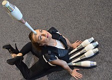 Circus Sarasota hula-hooper Chiara Anastasini tries to teach A&E Editor Heidi Kurpiela how to work two hoops at one, by spinning one around her wrist and one around her waist. It’s not as hard as you think.