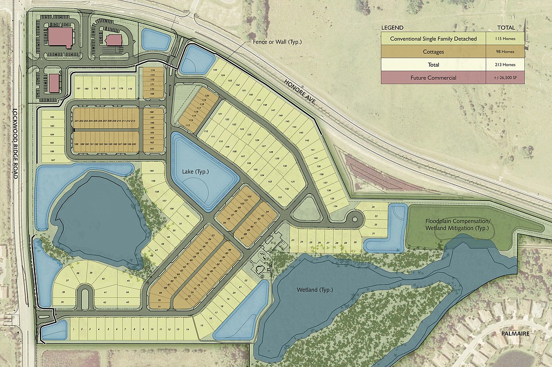 Manatee County commissioners on April 7 unanimously approved a preliminary site plan for Woodbrook, a 213-home project slated for 95 acres at the southeast corner of Lockwood Ridge Road and Honore Avenue. The project also includes 28,800 square feet for commercial space, with opportunities for retail stores, restaurants, professional or medical office and personal services uses such as a hair salon.