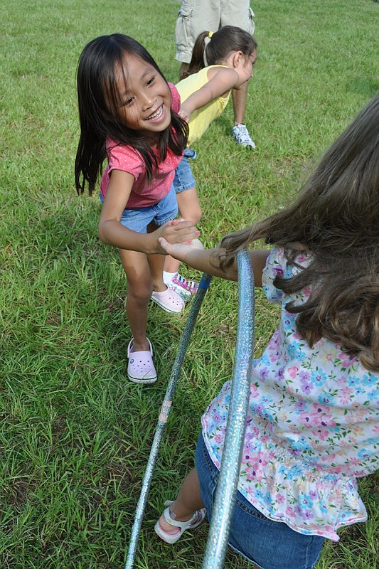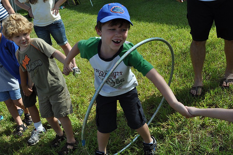 Michael Rixon made his way through the hoop without letting go of his neighbor's hands.