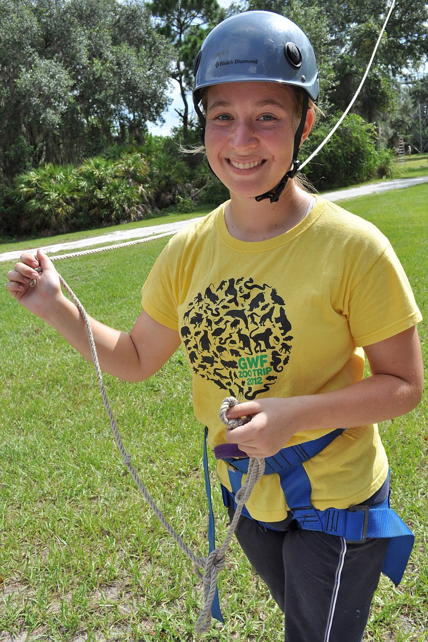 Catherine Sanchez, 14, smiled big as she went down the zip line.