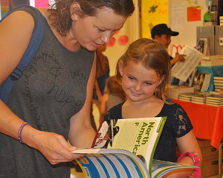Guest Owanza di Mdina looked at the works of artist and Let's Create Art owner, Clark Prosperi.
