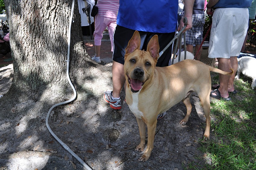Arthur Rowe’s dog, Gypsy, waits to be blessed.