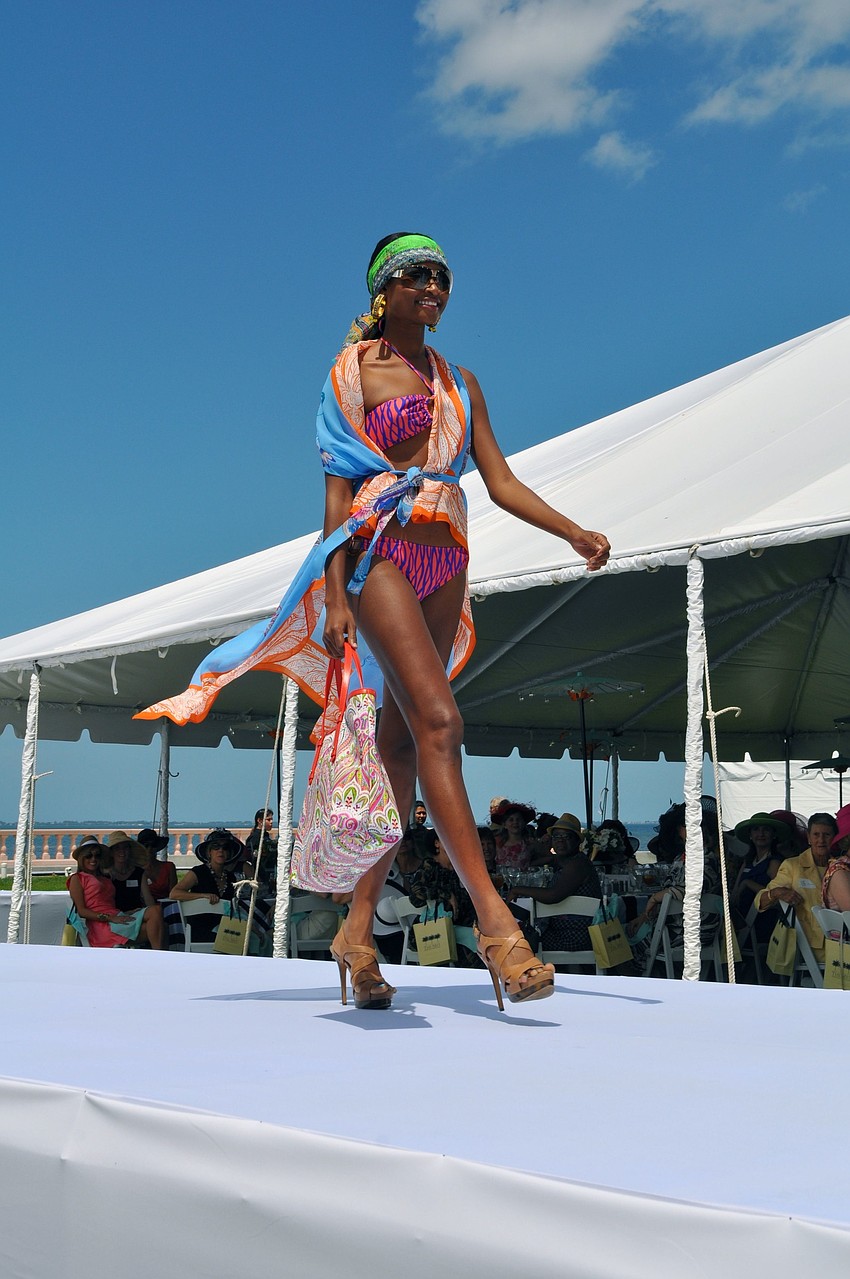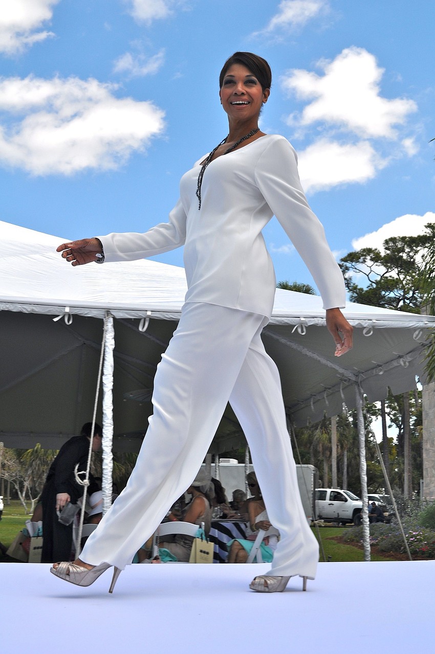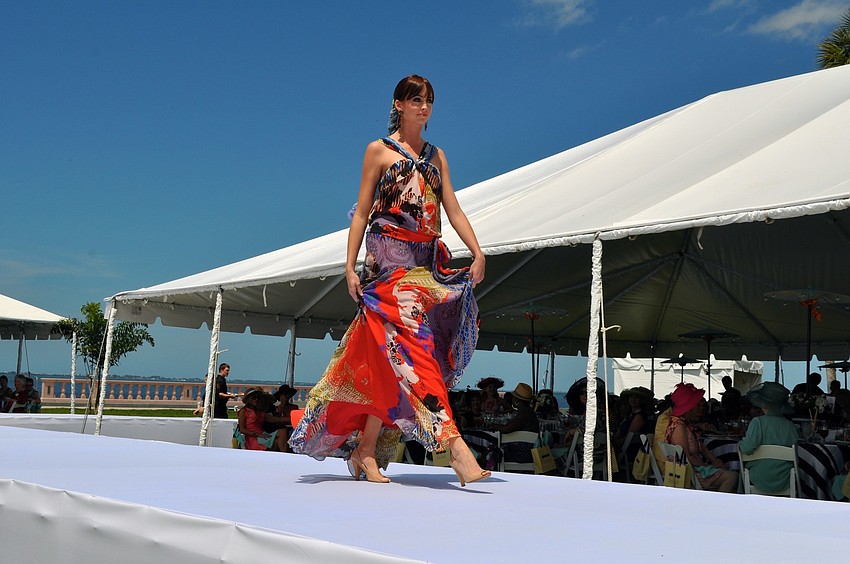 The women sat underneath tents to stay cool during the fashion show and luncheon.
