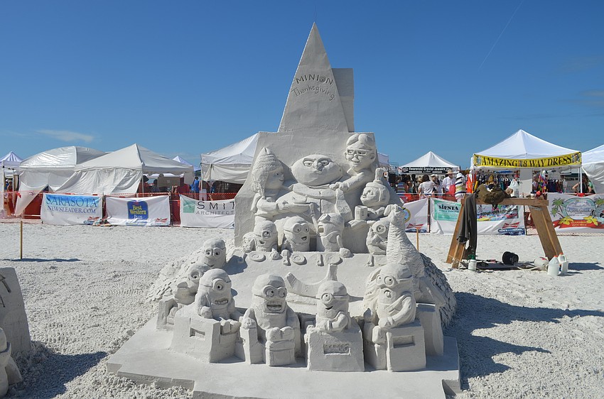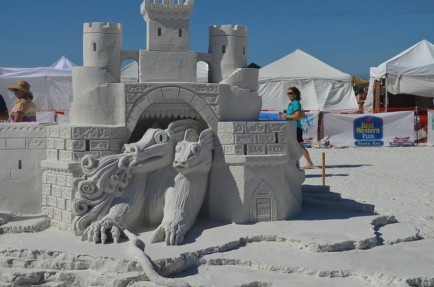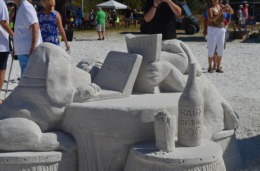 Shelly Chesna with daughter Alex Brobst sculpt sand in the children’s section