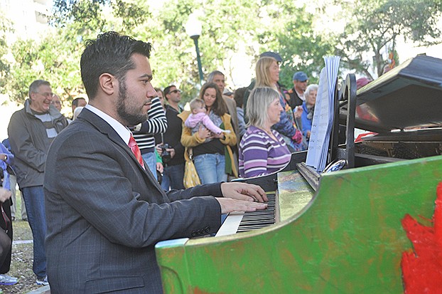 Music and art fans filled Five Points Park Friday, Jan. 17, for the unveiling of the six pianos decorated for the Sarasota Keys public art project. Guests admired the pianos before enjoying a live performance.
