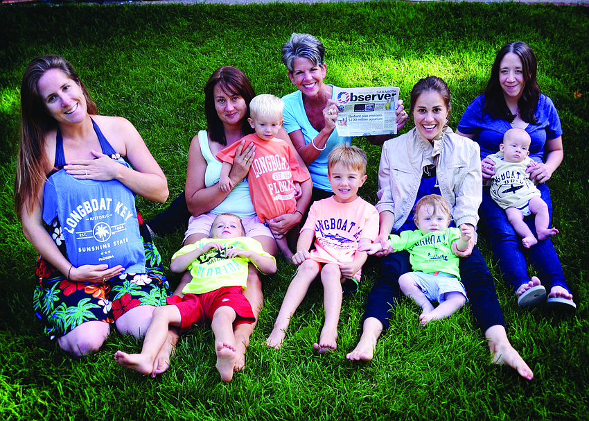 FAMILY TIES. Sally Schule shares her Sarasota Observer with her four nieces and 5 1/2 (one is due in September) grand nephews while at an annual family reunion in Clinton, Iowa. Everyone loved their Longboat Key shirts Schule brought for them!