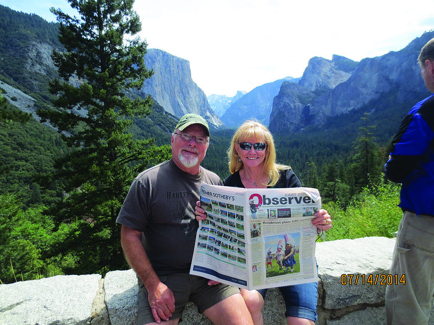 NATIONAL NEWS. Miles and Joyce Toler pause to take in the scenery at Yosemite National Park. The stop was one of ten national parks the couple visited on their trip.
