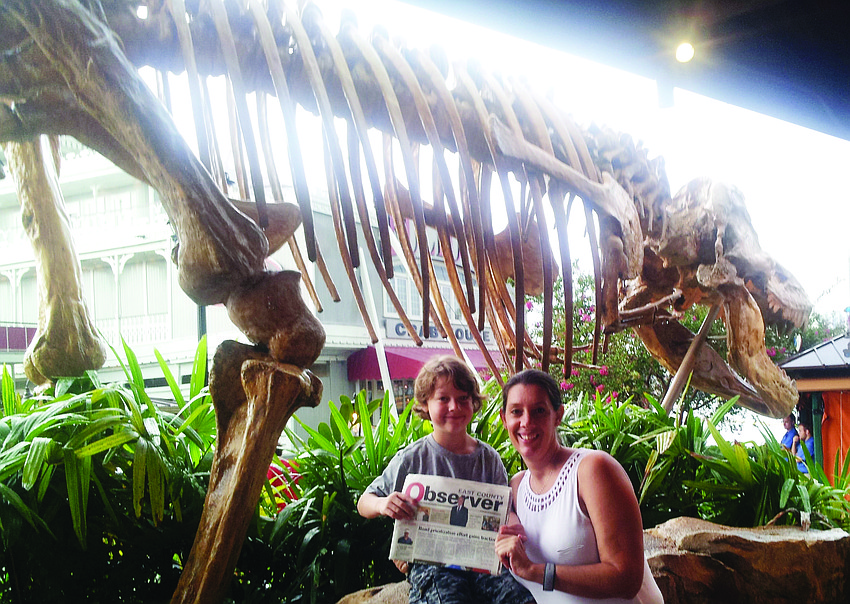 NO BONES ABOUT IT. The East County Observer traveled all the way to the prehistoric age with Lisa Compton and her son, Troy, as they dined at the T-Rex Cafe at Downtown Disney in Lake Buena Vista.