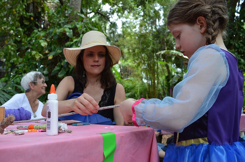 Parents and children enjoyed crafts during the Hug-A-Tree event at the Sarasota Children's Garden.