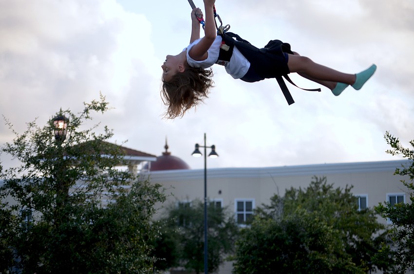 "Higher! I'm flying,"Sydney Settles said while flipping through the air in her harness.