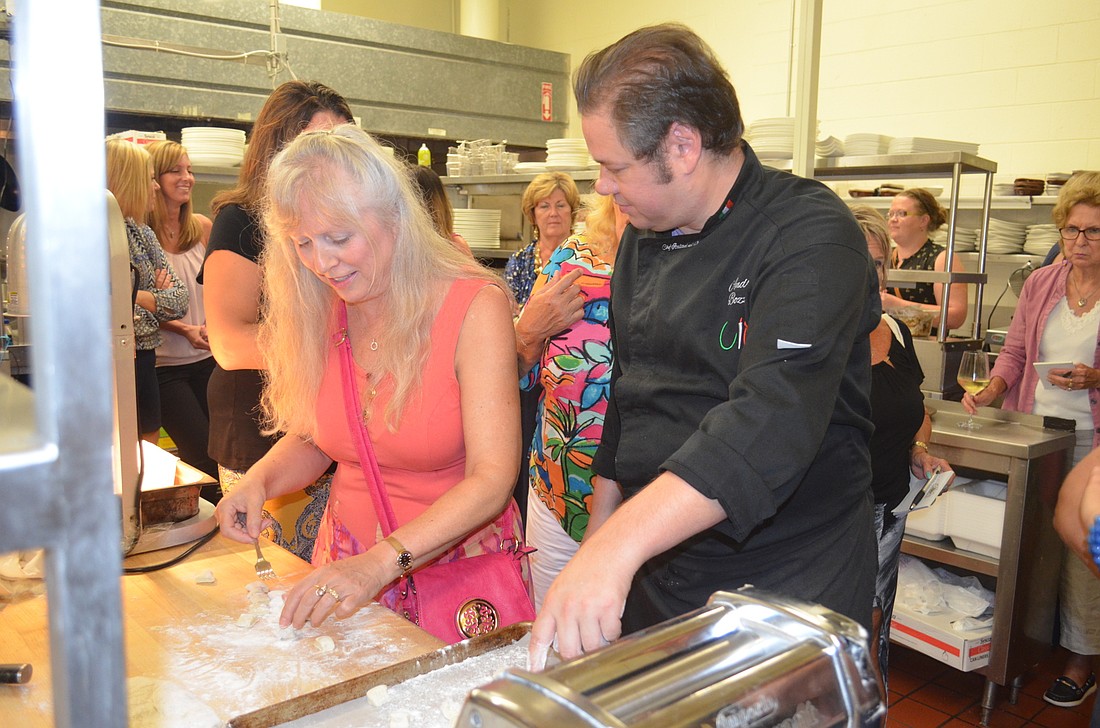 Chef Andrea Bozzolo, right, shows Carol Sher how to make gnocchi