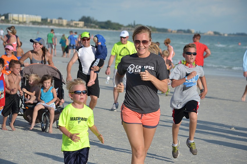 Weekly runs along the shores of Siesta Key Beach bring out children and families.