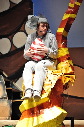 Horton the elephant, played by senior John D’Amico, sits on an egg for a bird, as she takes the afternoon off.