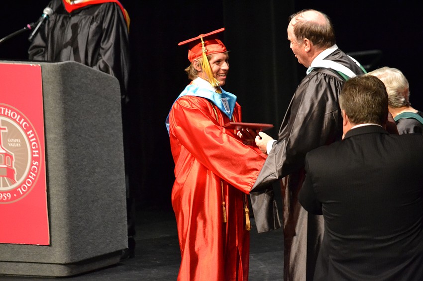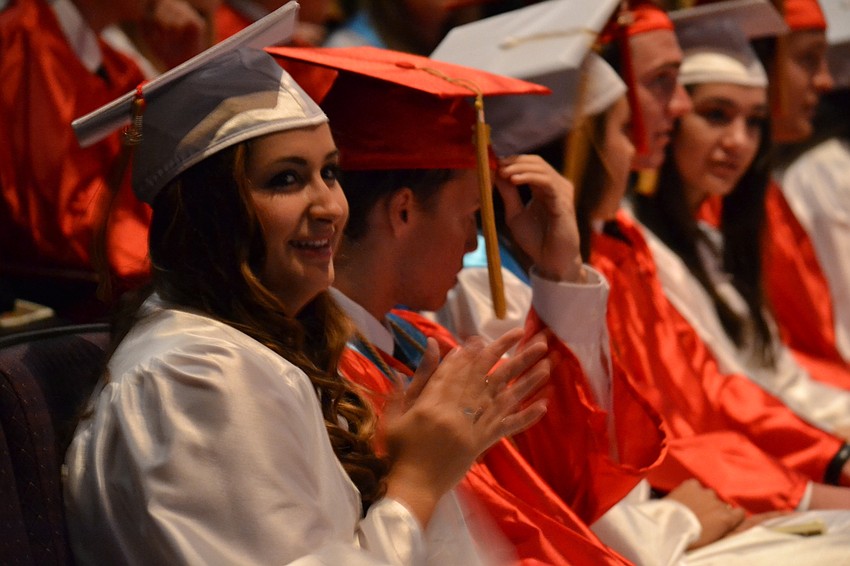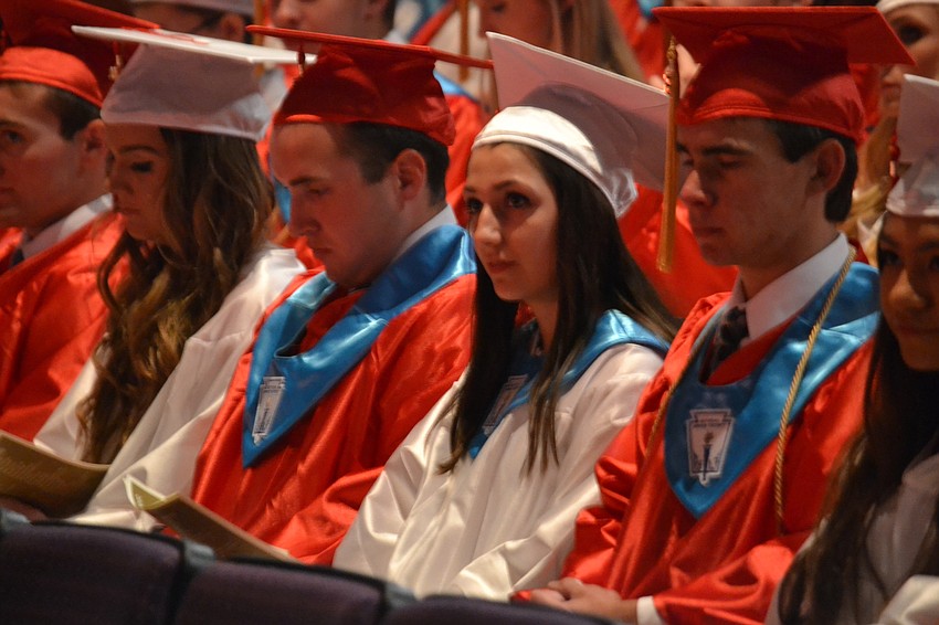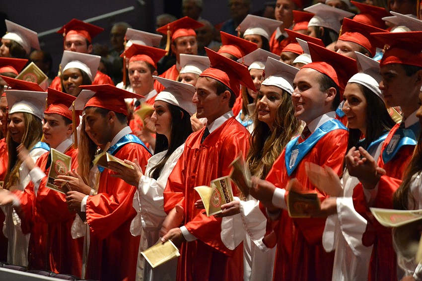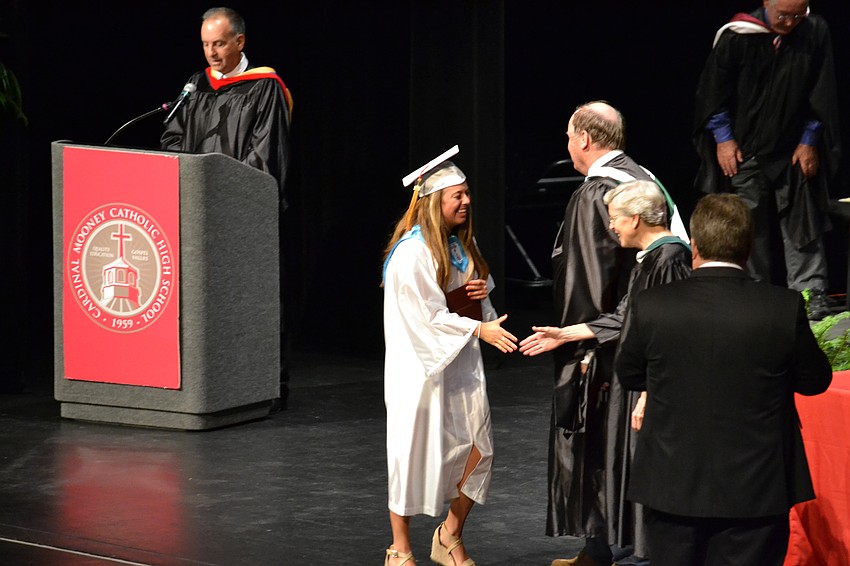 Parents and friends gathered to congratulate students as they took their final steps before graduating from Cardinal Mooney Catholic High School Friday evening at the Van Wezel Performing Art Hall.Â