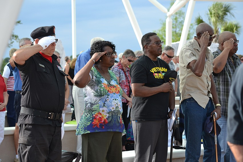 Families, visitors and veterans were welcomed to Patriot Plaza at the Sarasota National Cemetery for the Memorial Day Ceremony Sunday evening. A special recognition was given to veterans who served during the Vietnam War with a pin to commemorate the 50th anniversary.