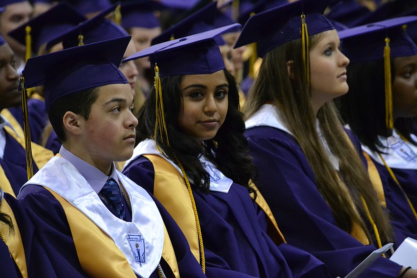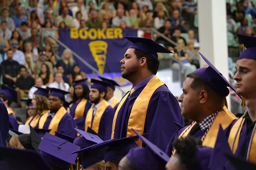 Another class of seniors from Booker High School moved their tassels from right to left during the commencement ceremony Saturday morning at Robarts Arena.