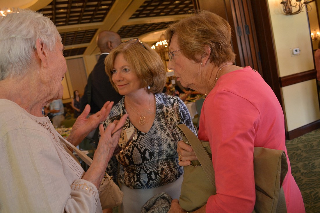 Georgie Ann Feddako, in black, chats with friends Pat Dye, in teal, and Barbara Stevens, not pictured.