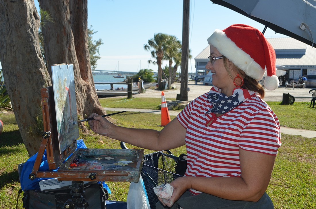 Lisa Swift smiles as she paints on Dec. 10 at the Sarasota Sailing Squadron.