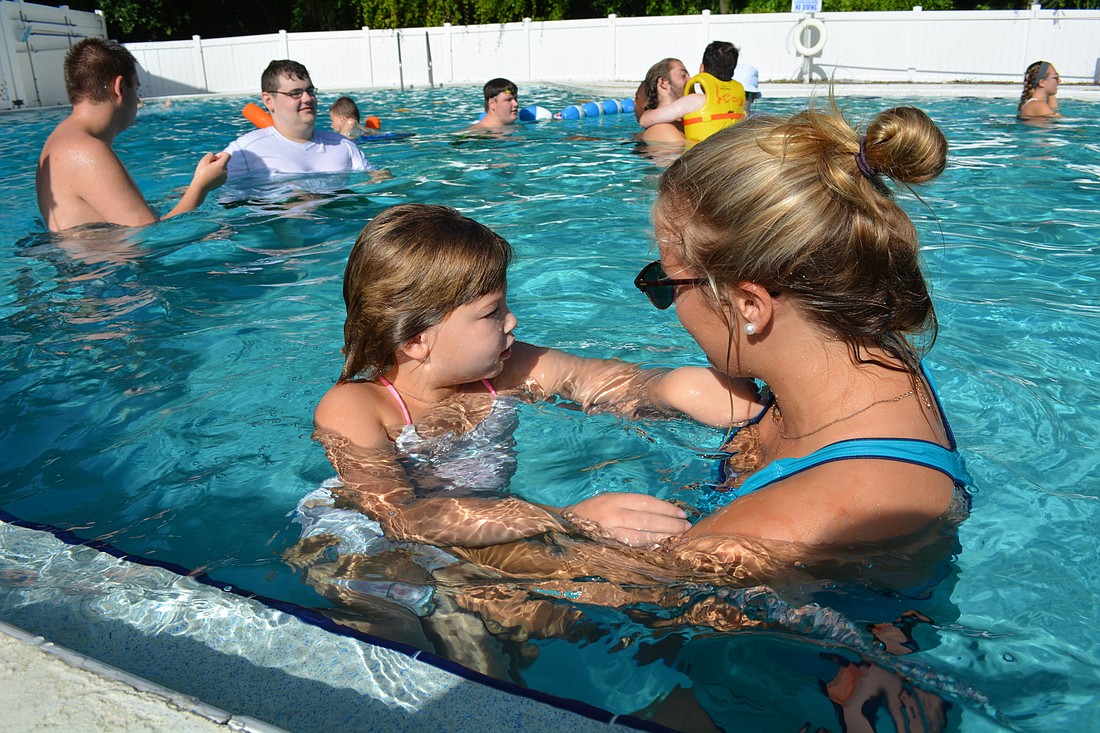Payton Aaron, 15, plays a game of catch with friends in the pool.