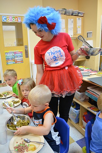 As children at Kiddie Academy sat around their lunch tables March 2, Olivia Malin couldn’t seem to get enough of her special lunch — green eggs and ham.