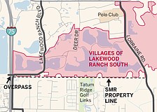 The overall project, previously called the Villages of Lakewood Ranch South, generally runs from Interstate 75 to east of Lorraine Road between University Parkway and Fruitville Road. It is located immediately south of the Sarasota Polo Club and the Lakewood Ranch Corporate Park and includes 5,144 residential units surrounding seven large lakes created by SMR’s shell mining operations. It also includes 390,000 square feet of commercial space, 90,000 square feet of civic space and hundreds of acres of preserves and wetlands on 5,500 total acres.