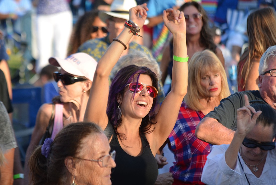 Crystal Kubis dances to reggae band Jah Movement at Giving Hunger the Blues on Sunday at Van Wezel Performing Arts Hall.
