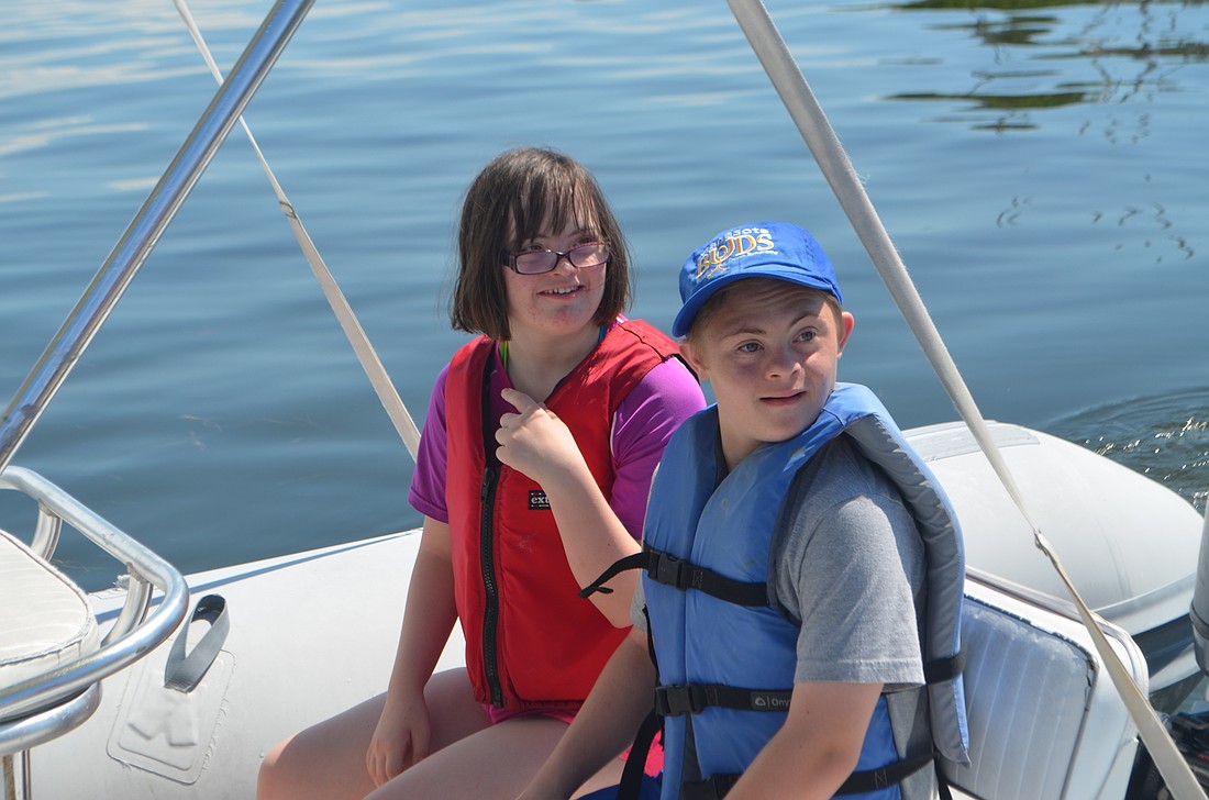 Ella Quaid and Joey Baar, both 15, get ready for a boat ride around the bay during a Manasota BUDS book club gathering on Sept. 24.