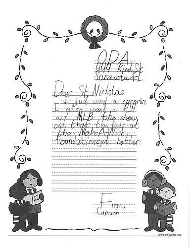 Fortunately for him, third graders in Mrs. Renne Pitts’ classroom at Out-of-Door Academy made it easy. They knew exactly what they wanted, and wrote him letters explaining it in detail. See their handiwork in the gallery above, and read the typed-out versions below.
