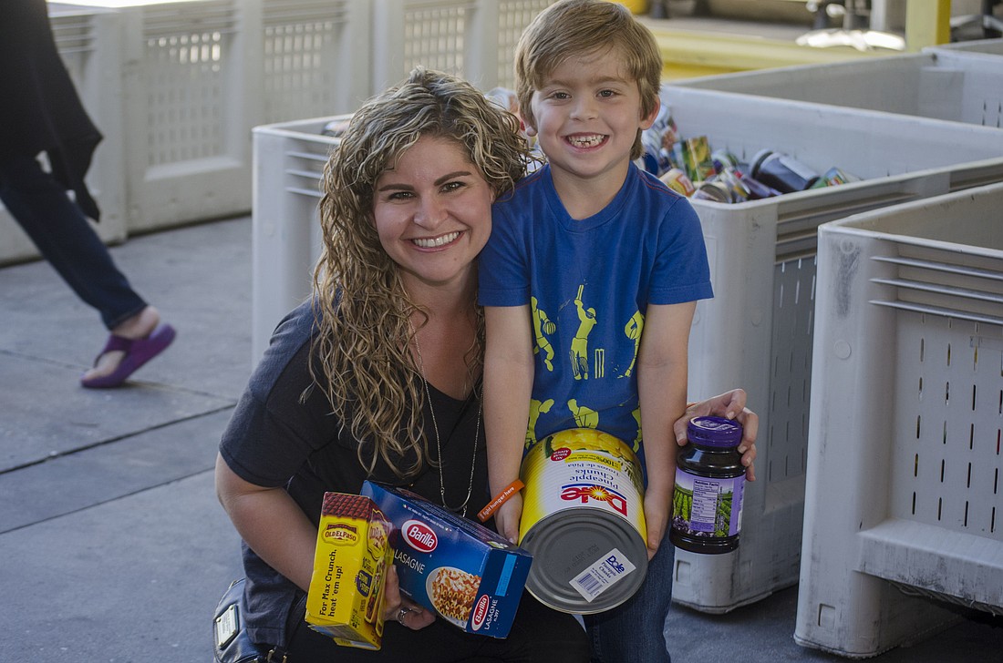 Parents, children and teachers from Temple Sinai's Religious School carefully maneuvered carts of food between sorting bins.