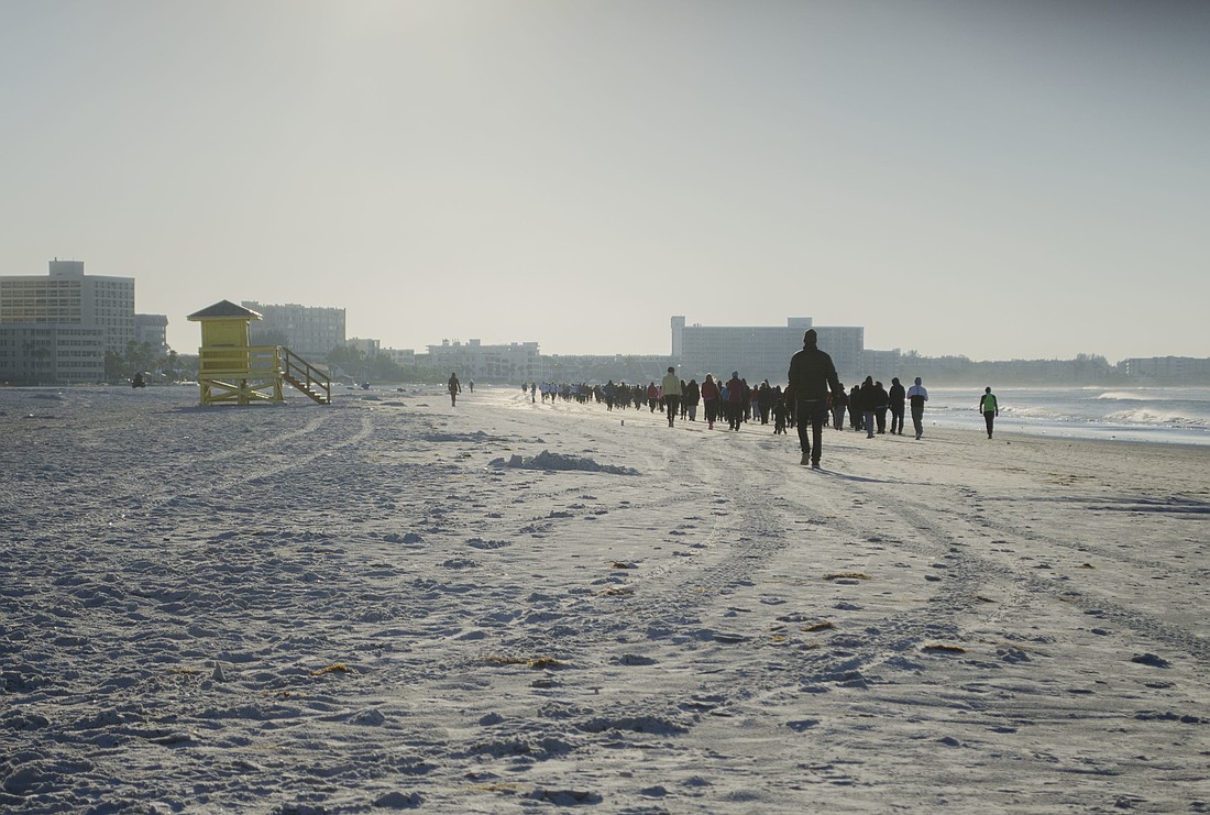 Runners in the Andrew Monroe 5K make their way down Siesta Key Beach.