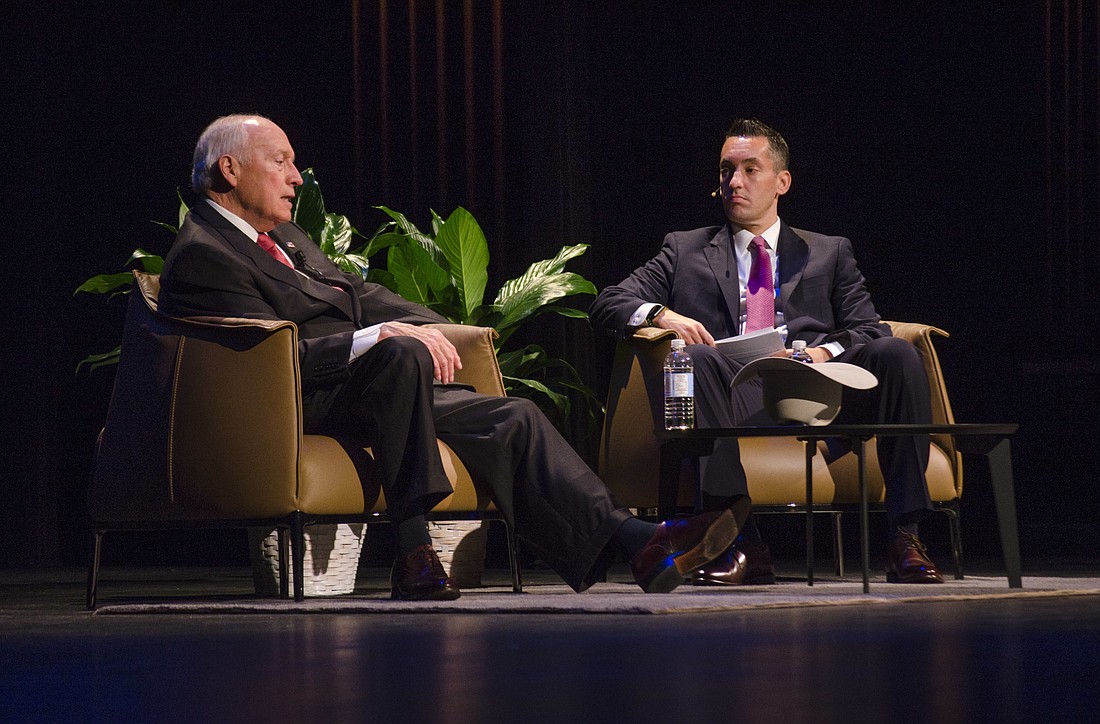 Vice President Dick Cheney discussed 9/11, President Donald Trump and his struggle with heart disease with moderator Ringling College Library Association Town Hall Committee Chairman Patrick Duggan.