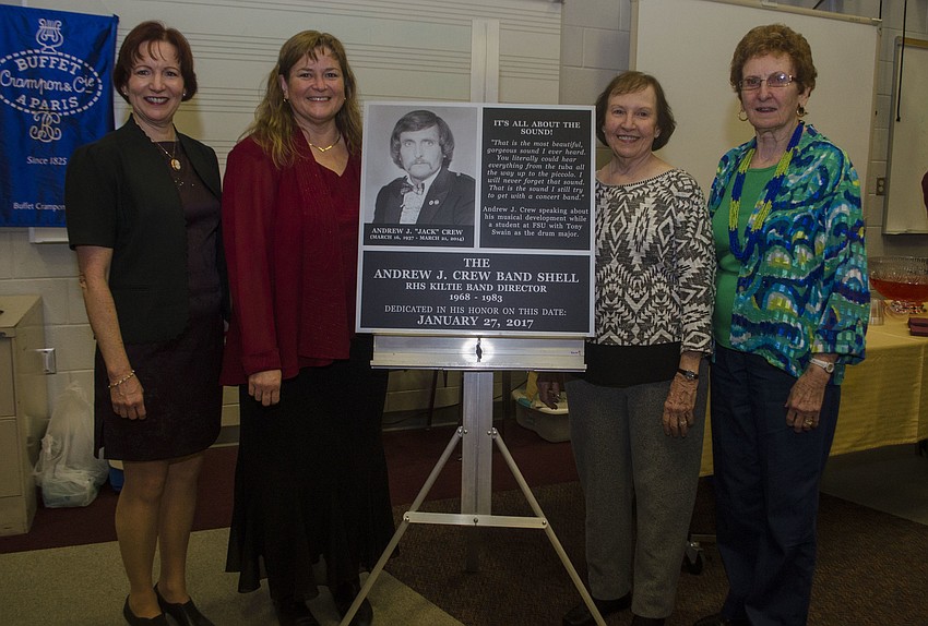 Crew served as band director from 1968 to 1983. He died in 2014. His wife, sister and daughters attended the event at Riverview in his honor.