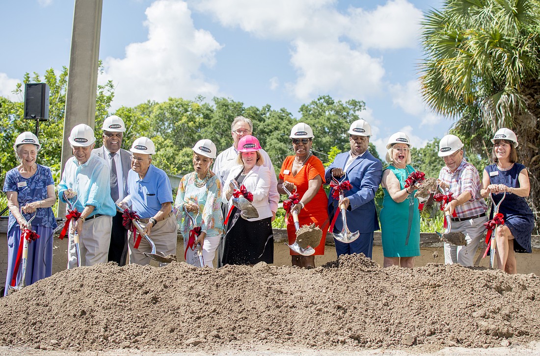 Westcoast Black Theatre Troupe Executive Director Julie Leach, Sarasota City Commissioner Willie Shaw, City Commissioner Jennifer Ahearn Koch, Vice Mayor Liz Alpert and WBTT founder Nate Jacobs symbolically break ground.