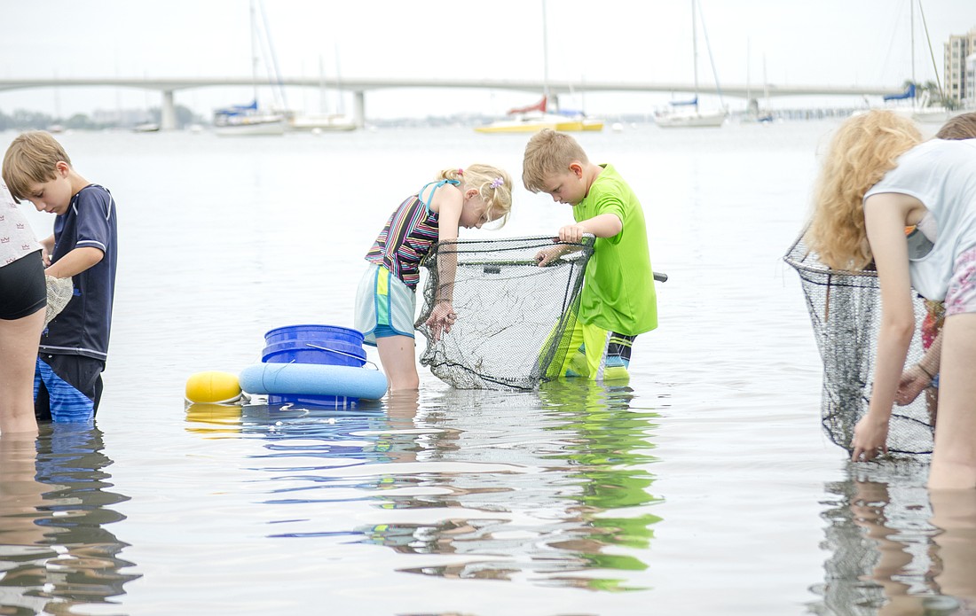 This week, campers got an up close and personal look at their seafaring neighbors. With nets and buckets in tow, children waded into Sarasota Bay on Tuesday morning to collect specimens.Â