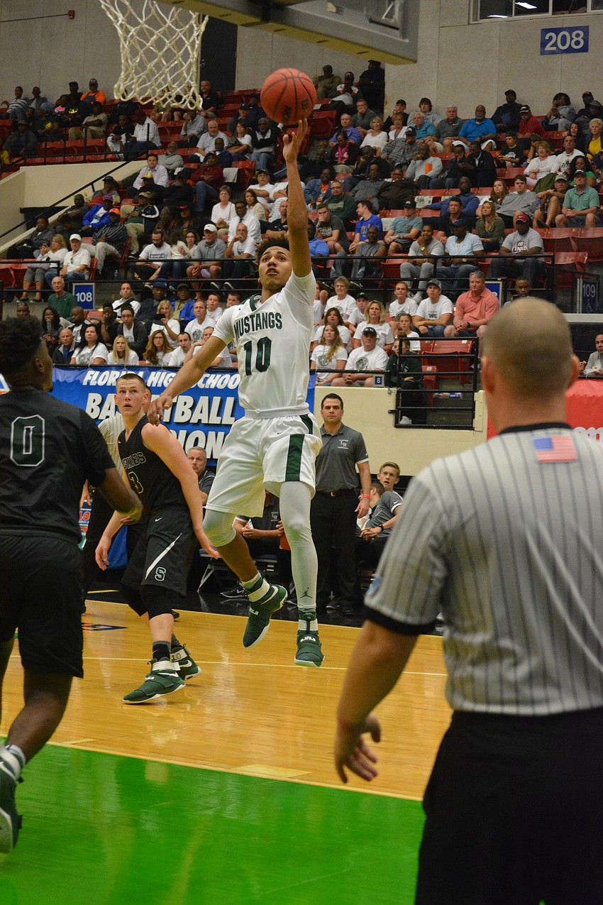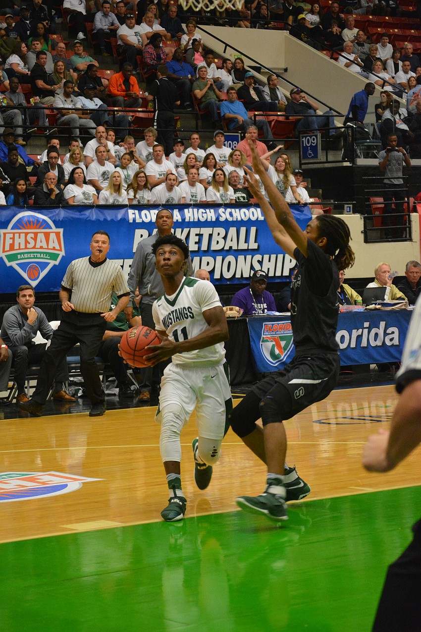 On Friday at the Lakeland Center against Sickles in a state semifinal, that depth was put to the test when the school's all-time leading scorer, senior Sam Hester, came down on an opponent's foot and twisted his ankle. Hester would leave the game, returning briefly in the first half before sitting out for good in the second. He finished with zero points and one rebound.