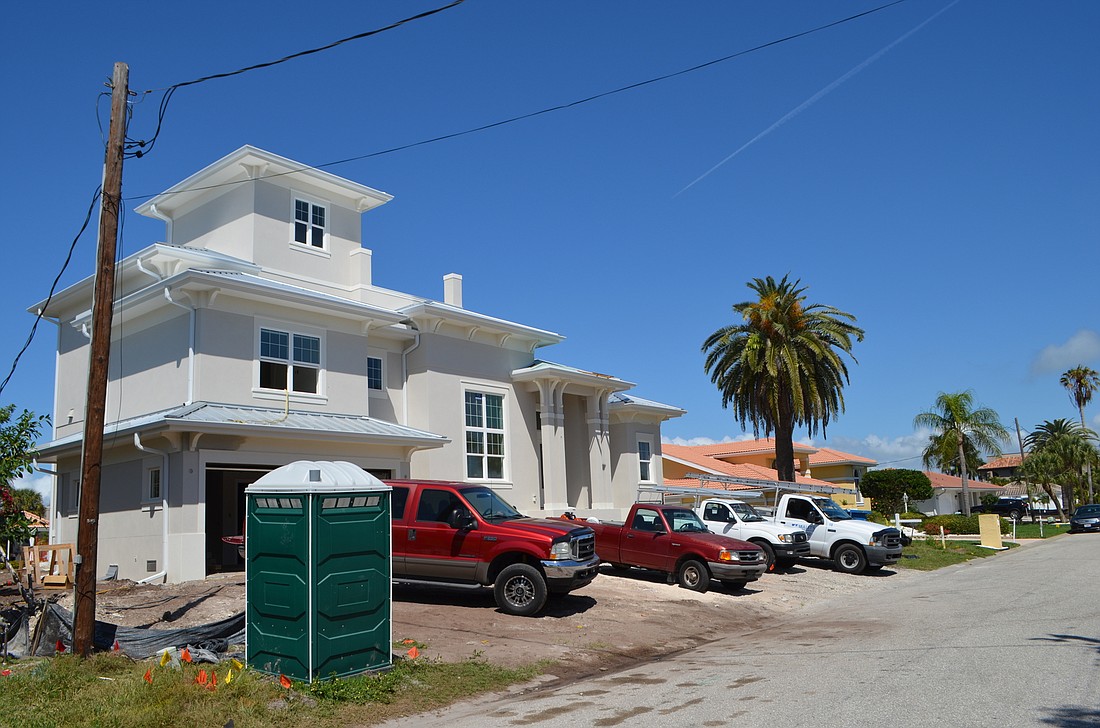 Located on top of a two-story home currently being constructed on Halyard Lane in Section 4 of Country Club Shores, the structure in question features an elevator shaft and a stairwell. It reaches about 10 feet above the 30-foot height limit established for single-family homes on the Key. Many of the surrounding homes are single-story structures, amplifying the difference.