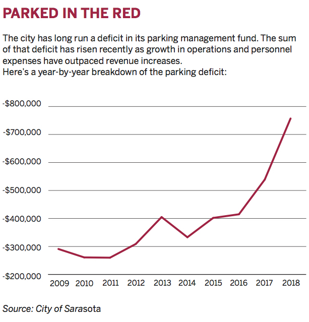 Barwin pointed out that a reduction in parking personnel could lead to a reduction in revenue. Information provided by city spokeswoman Jan Thornburg highlighted the parking manager’s role in setting up a paid parking district on St. Armands Circle, which will offset the expenses of building a parking garage there.
