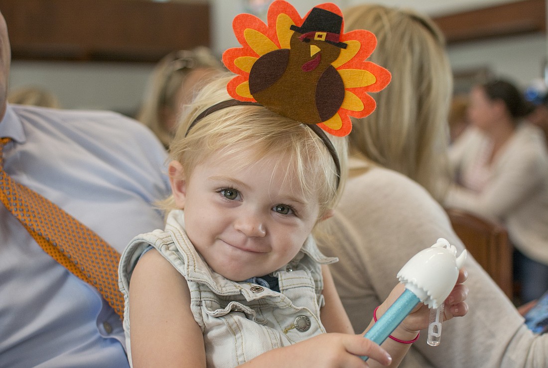 The preschool celebrated Thanksgiving with a pageant followed by a family feast.