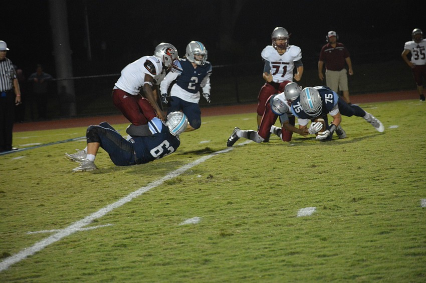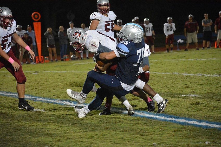 The defensive line duo of sophomore Ryan Ives and junior Tucker Harris wreaked havoc on an overmatched Santa Fe offensive line all night. ODA forced two fumbles and only allowed one scoring play, a deep pass on Santa Fe's first drive of the game that J.T. Taylor took to the house after breaking a tackle.Â