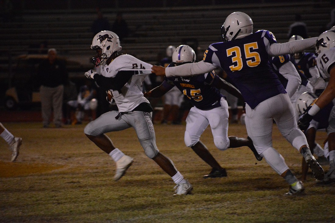 The Pirates defense held Booker senior quarterback Jermaine Ziegler to 68 yards passing, though Ziegler did find senior Talik Keaton for a touchdown late in the game. By then, Braden River had removed its starters from the game.Â