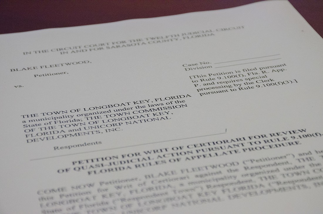 The appeal, in the form of a lawsuit filed Monday in the 12th Judicial Circuit Court, claims Chuck Whittall and Unicorp National Developments Inc. did not have standing as “the landowner” to seek the town’s approval to redevelop the 17.6-acre site at 1620 Gulf of Mexico Drive.