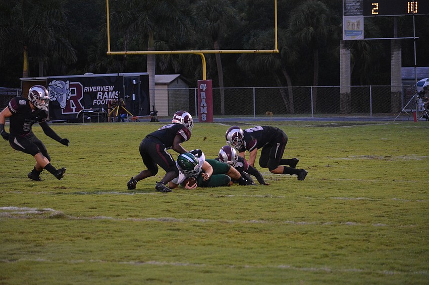 The Rams (1-1) fell 19-2 to Venice High (1-1) Friday night at the Ram Bowl. In a game that saw puddles of mud change the color of both team's jerseys, the Rams' offense failed to find solid footing. Riverview had two drives enter the Indians' red zone and came up empty in both. The Rams relied heavily on senior running back Ali Boyce and sophomore running back Michael "Poodah" Hayes, and the duo did what they could, but the lack of a consistent passing game allowed Venice to key on the ground game. The pair combined for 97 yards.