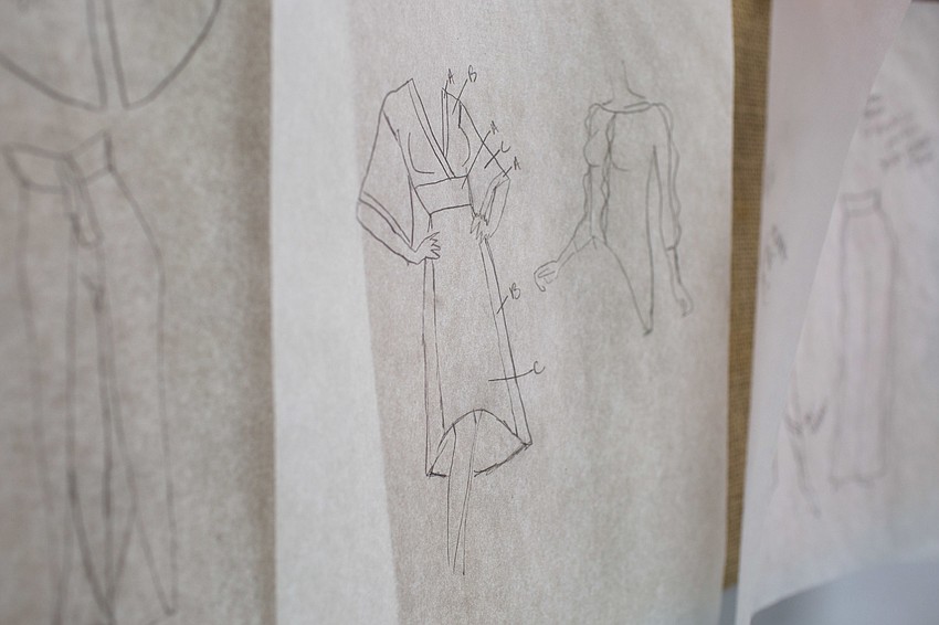 She creates the designs for her fashions, draws the pattern drafts, sources her own fabrics, then cuts and sews to create a one-of-a-kind piece. She then turns around and sells it in her retail store, Aerial Clothing SRQ, located at 6591 Superior Ave.