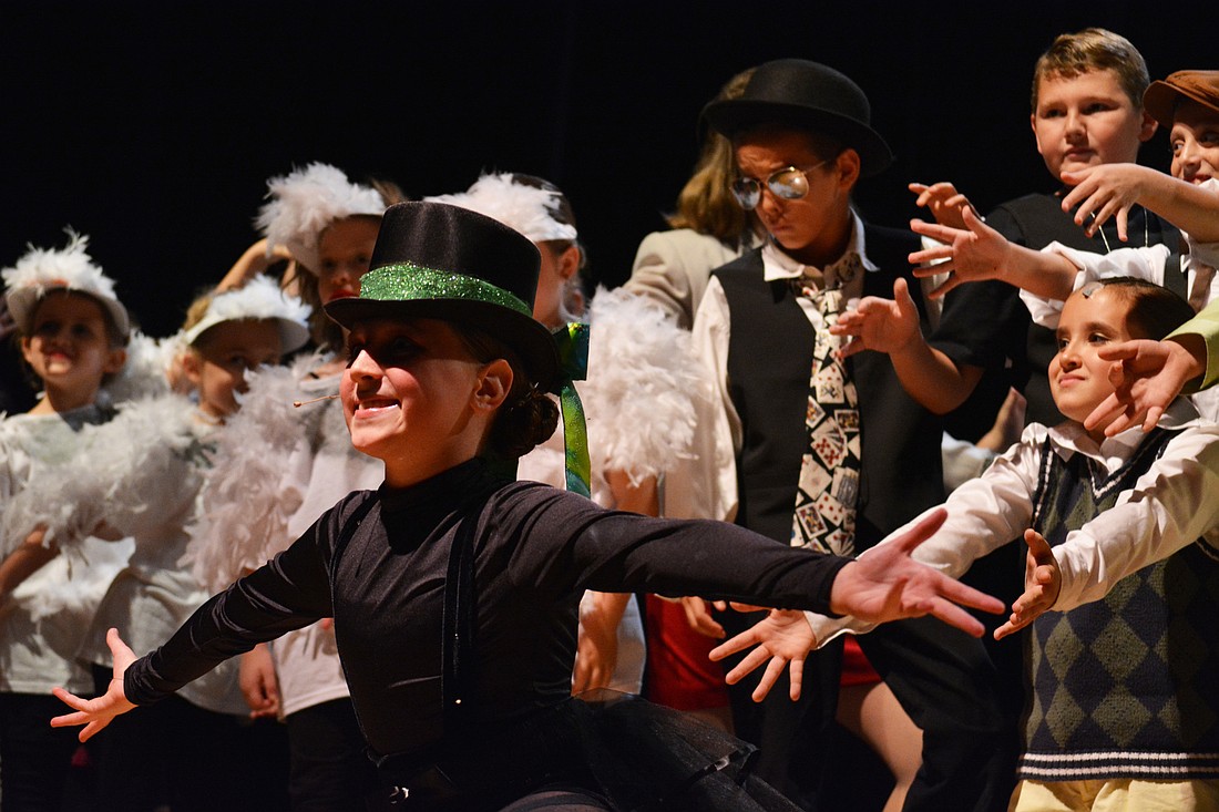 Claire DePasquale, a featured dancer, performs a number as officials prepare to arrest James for stealing the giant peach.