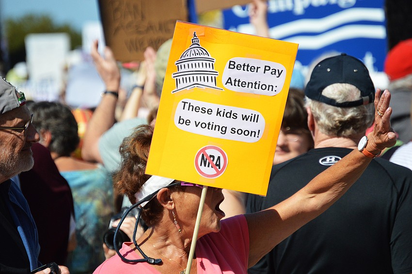 Up to 8,000 people gathered along the Sarasota bayfront today to participate in March For Our Lives — a national event advocating for stricter gun control, organized by the student victims of a mass shooting earlier this year in Parkland, Florida.