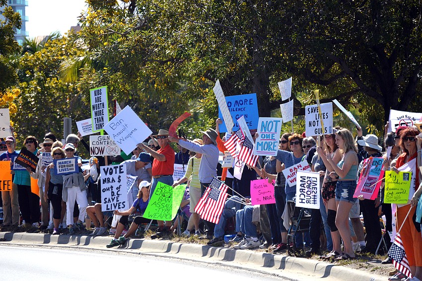 The march was more of a demonstration, as sign-holders lined both sides of U.S. 41 near Gulf Stream Avenue, encouraging drivers to honk to show their support. Police estimate there were between 6,000-8,000 people at the event.