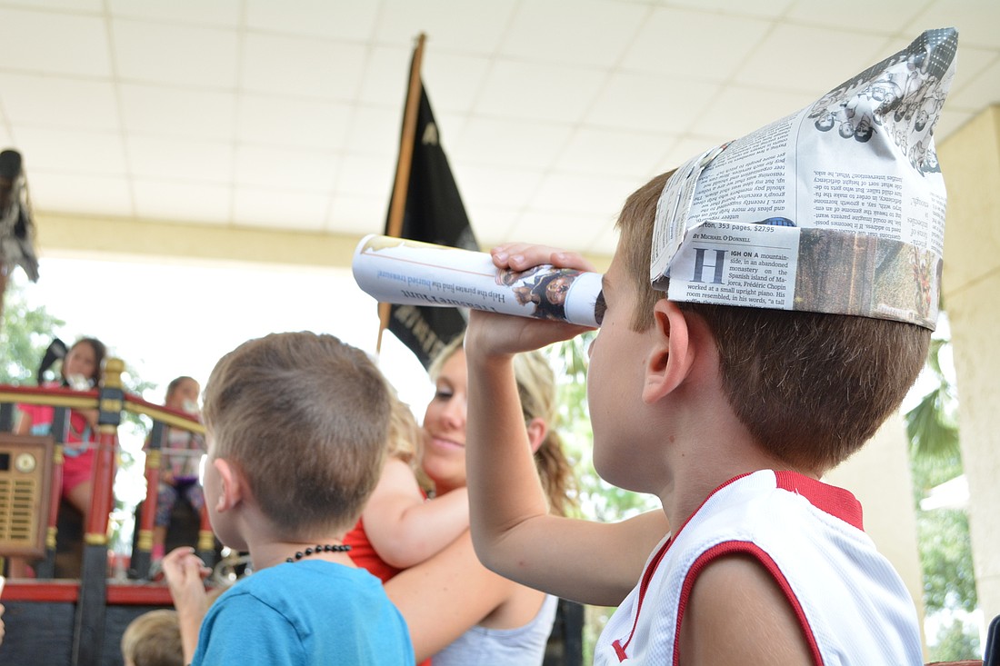 Arthur Church is captured by story time. He made crafts, including a pirate ship made from paper and a straw, before boarding the pirate ship.