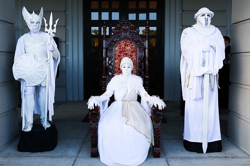 The celebration included a cocktail hour on the front steps, where the magic started with a being greeted to three statues, who were actually humans instructed to stand very still.