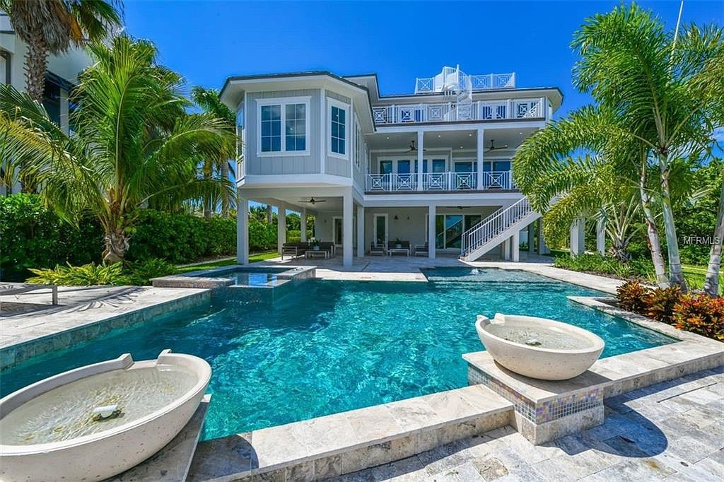 The home, designed in a West Indies style by Sarasota architect Brian Phipps and built in 2018, offers 7,365 square feet of total floor space. The five-bedroom home with five full baths and two half-baths is in Longboat Key’s The Enclave, at one of the narrowest points of the island.