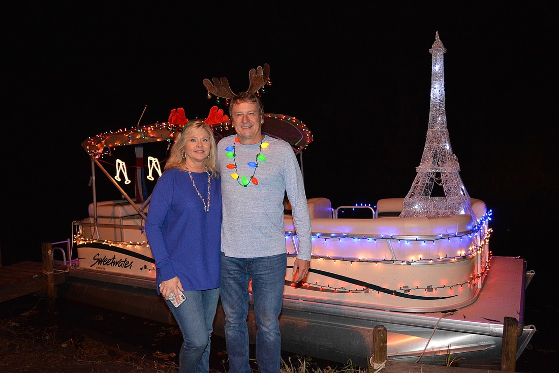 Mote Ranch residents John and Kristina Waskom didn't take the typical boat ride Dec. 7. They had their vessel decorated in white twinkle lights, a string of martini glass lights and a 7-foot tall Eiffel Tower.Â
